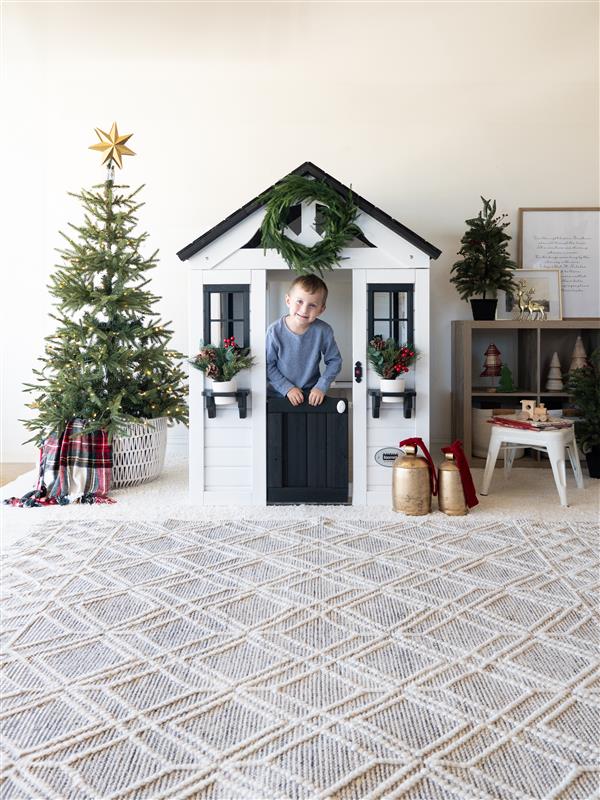 Traditional backyard playhouse invites endless fun with playful accessories.